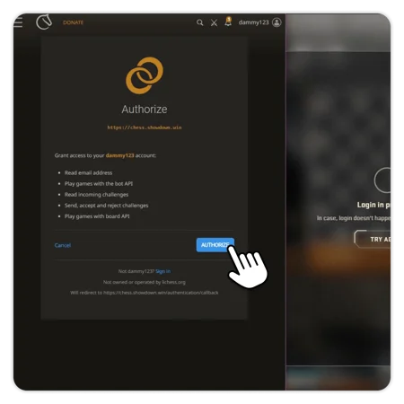 Go back to Showdown to login again, click on “LOGIN TO PLAY CHESS”