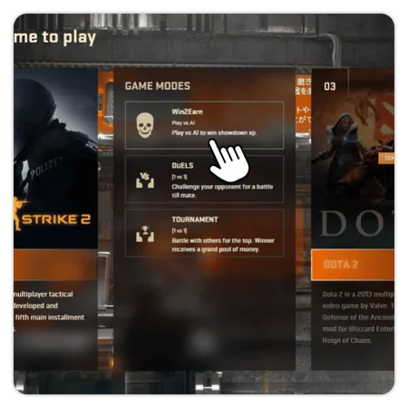 After registering, hover your mouse over LICHESS and select the first game mode, 'WIN2EARN'